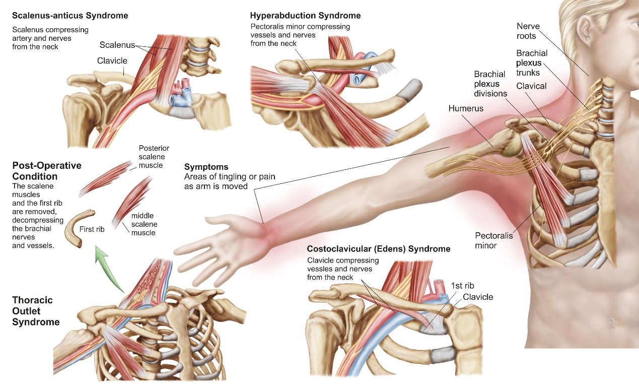 正骨发现: 第一肋骨常因此发生向上移位(Superior Subluxation),压迫臂丛神经或锁骨下静脉,引发肩带凹陷综合征” [6]